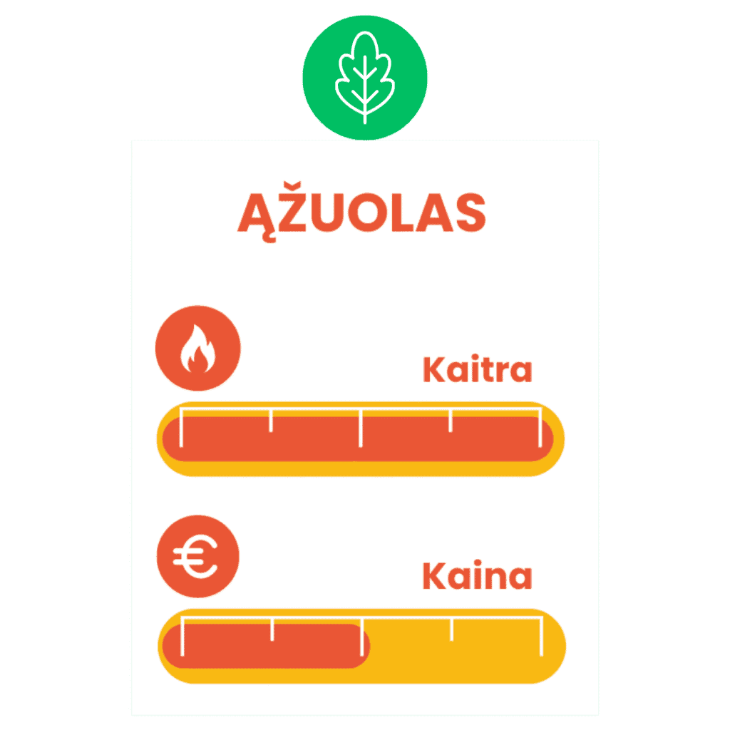 | Ąžuolas | Aukšta | Ilga | Ilgesniam degimui |