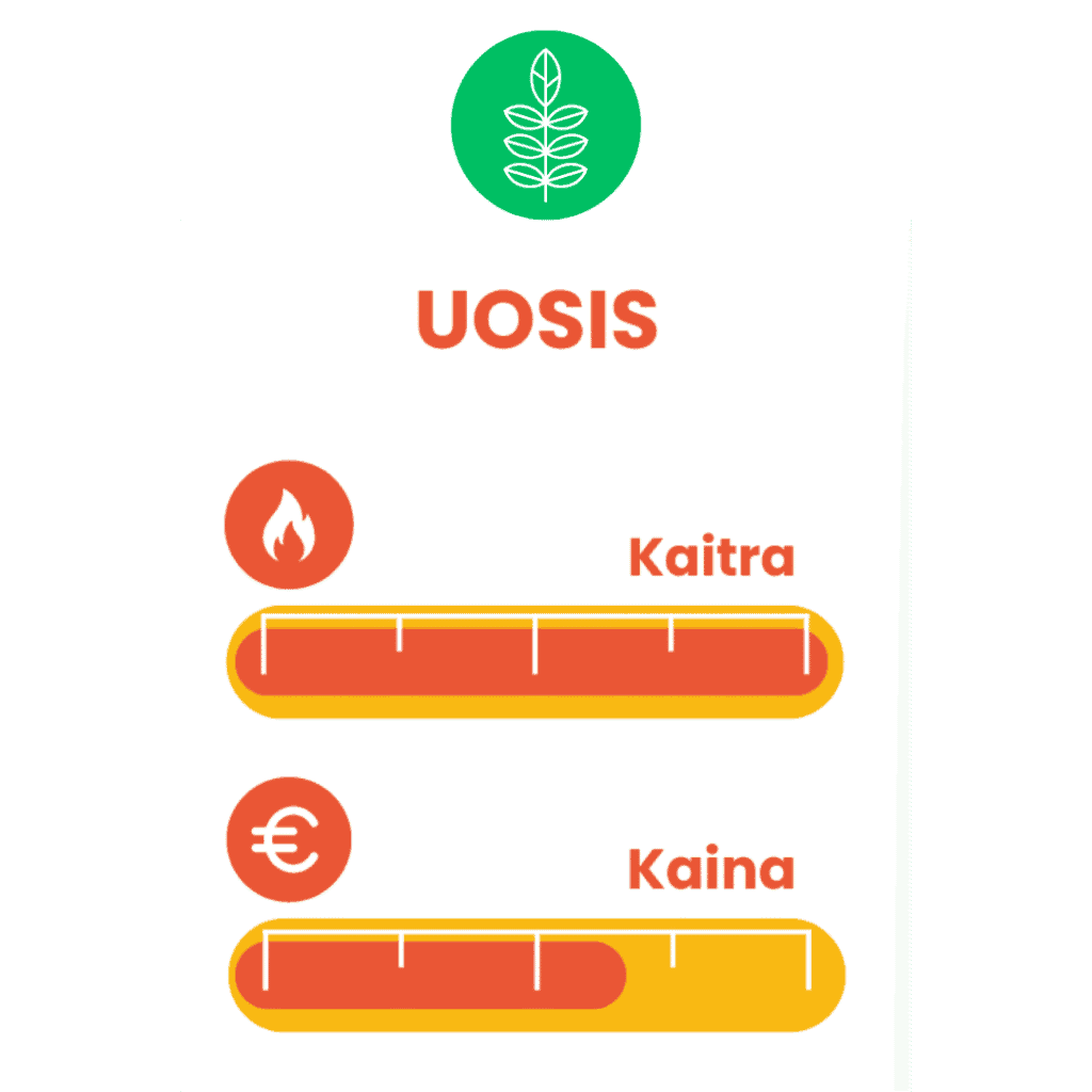 Uosis dažnai laikomas tarpine medienos rūšimi tarp beržo ir ąžuolo – jis lengviau įsidega nei ąžuolas, bet dega ilgiau nei beržas. Dėl šios priežasties tai patogus pasirinkimas tiek kasdieniam kūrenimui, tiek ilgesniam šilumos palaikymui. Uosio mediena taip pat tinka lauko maisto gamybai, nes suteikia švelnų, ne per intensyvų aromatą.